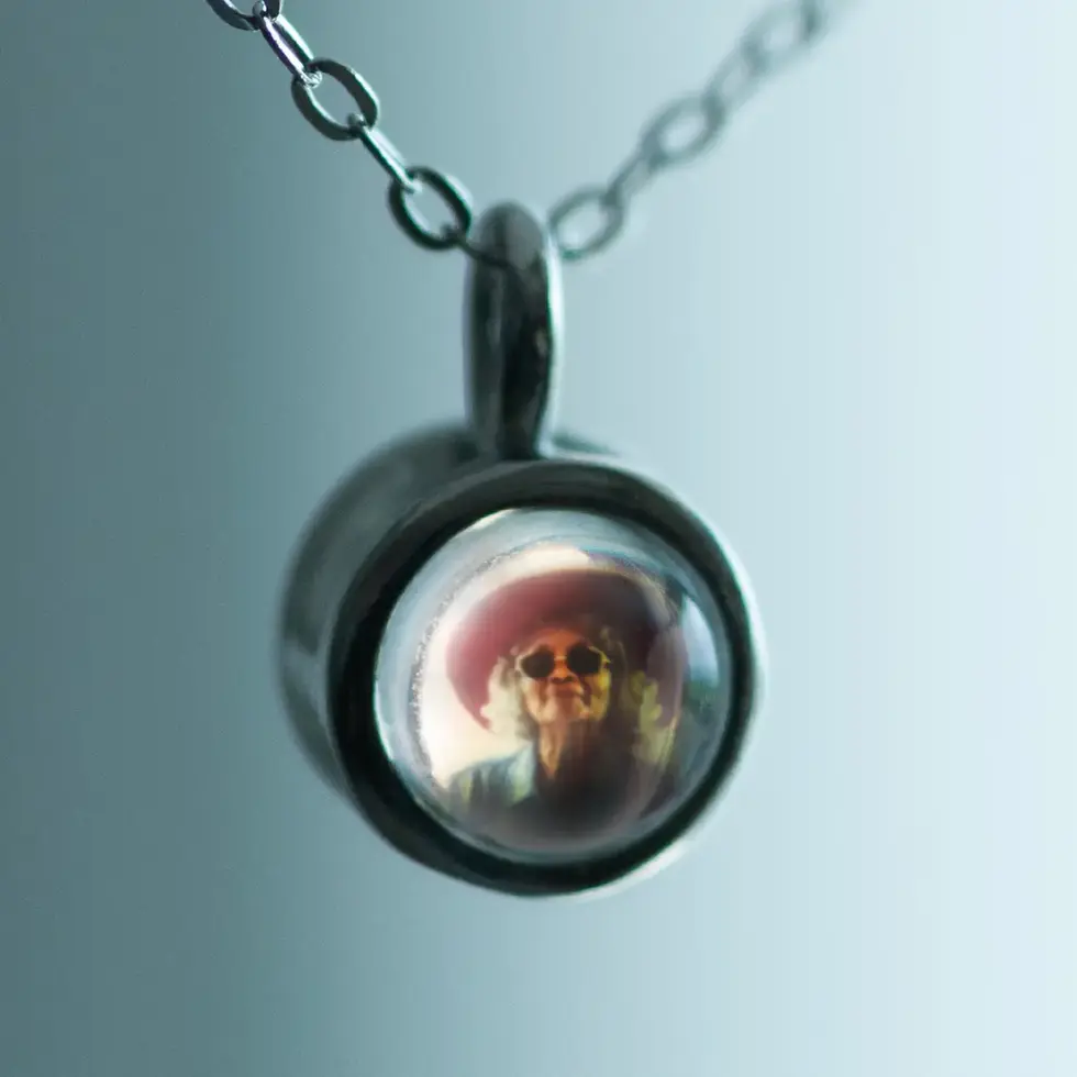 The Classic is a beautiful, understated way to remember a loved one, pet or special memory. It's set with our signature Stanhope lens and your chosen photo. Hold it to the light, look closely into the lens and your photo appears. Otherwise, the photo is hidden.
